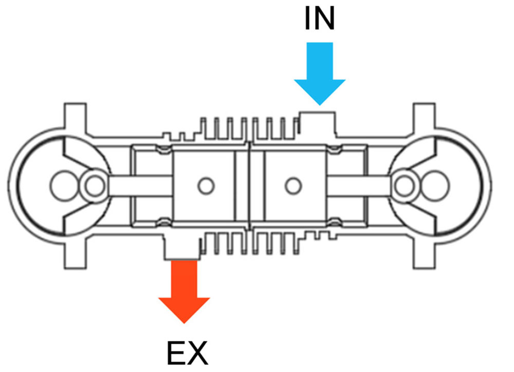 飯島ら(1)は電動パワートレイン用の内燃機関として、高出力密度、高熱効率、低振動を実現し得る、2ストローク対向ピストンエンジンに着目している。そして、その可能性を探るため、試作エンジン(表1)を作成し、吸排気形態は図1に示すように、一方向に作動ガスが流れるユニフロー掃気を行い。点火位置は図2に示すような、1点点火と2点点火を比較し、その燃焼への影響を評価している。実験結果を図3に示す。2点点火の方が高い軸出力L、正味平均有効圧力(BMEP)を得られている。また、図4に60サイクル分の筒内圧力最大値(Pmax)を示す。1点点火ではPmaxが低く変動も大きい。これは前のサイクルの残留ガスの影響だと考えている。2点点火条件では、Pmaxが高く安定した燃焼が行われており、残留ガスで希釈された条件下でも2点点火の有効性が示されているという。本研究はまだ始まったばかりとのことであり、今後の進展にてメカニズム解明や超希薄燃焼の実現、および熱効率向上や排気特性改善の取り組みに期待したい。