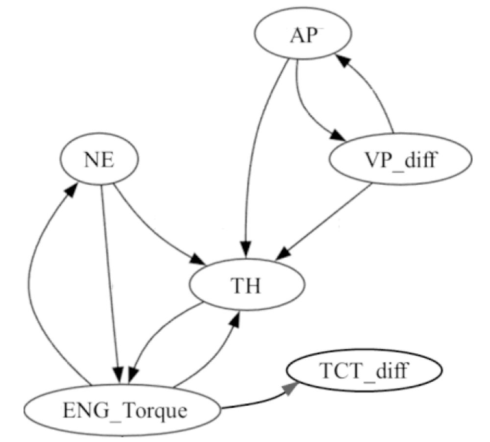 大塚ら(1)は大規模走行データと機械学習を組み合わせ、市場での部品の挙動を推定する手法を提案している。ユーザーが所有する車両のECUで扱うパラメータのうち、通信容量を考慮し車速、エンジン回転数などを収集し、対象とする部品の使われ方を推測している。これにより、エンジン開発段階で実施する耐久試験を最適化し、やり直し試験を減らすことを目的としている。市場から収集した多数のデータから当該部品の挙動を求めるにあたっては、計算負荷を減らすため、機械学習を使用している。機械学習では理論式は使用していないため、図1に示すように、当該部品の挙動に影響する要因をパラメータとすることで、パラメータ間の関係を可視化する工夫をしている。前刷には掲載されていないが、これにより求められた値は、実測値と比較的良い一致を示していた。種々のエンジン構成部品について、このような予測が可能となれば、最適設計や耐久試験条件の最適化に貢献するものと思われる。