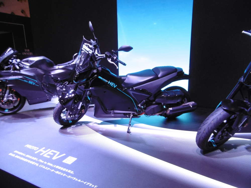 スクーターなのでてっきりシンプルなものを予想したら、シリーズパラレル式で、単気筒エンジンとモーター、ジェネレーターを持つシステムを搭載。ジェネレーターも駆動に使うこともでき、3つのパワーソースがある。シリーズ式と比較すると、それぞれは小さくできるので、レイアウト自由度はむしろ高まり、重量バランスの重要な2輪車には適しているという。(鈴木)