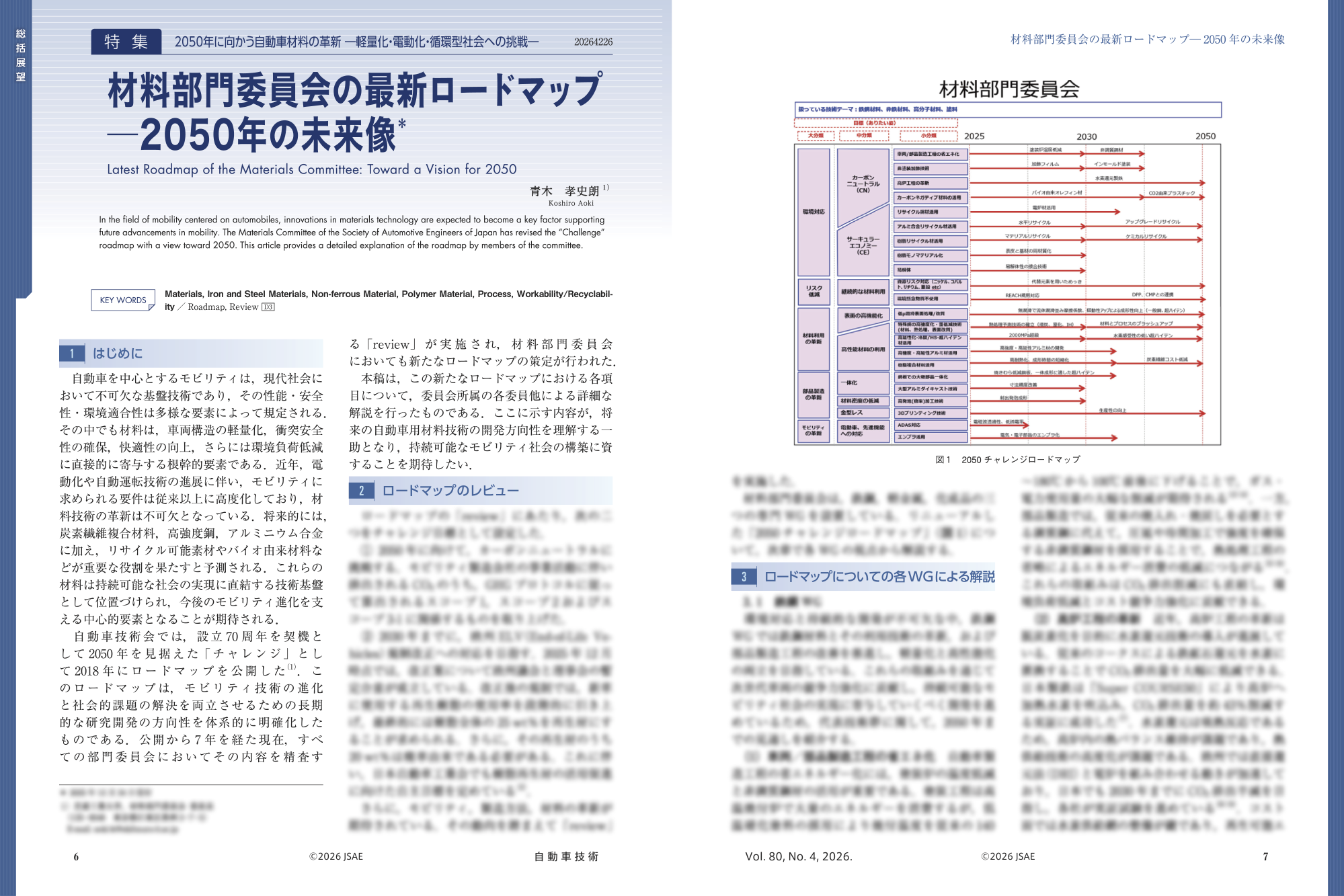 「特集:2050年に向かう自動車材料の革新 ―軽量化・電動化・循環型社会への挑戦―/Innovation in Automotive Materials Toward 2050 — Challenges in Lightweighting, Electrification and Building a Circular Society —」